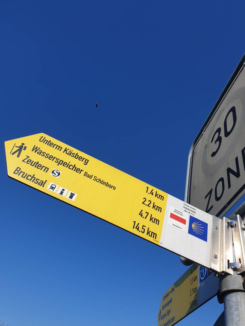 Öfter mal küsst unser Weg hier in der Gegend den Jakobsweg. Als blau oder gelbe Sonne hier markiert, begleitet er uns dann und wann ein Stück.