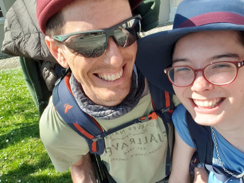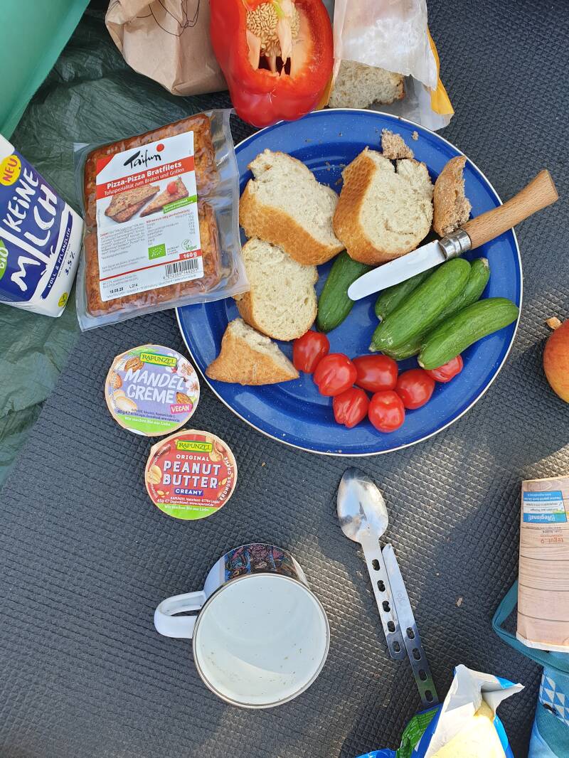 An den ersten Hügeln des Eichelberges machten wir (um 4 Uhr nachmittags) unsere viel zu späte Siesta. Ideal zum Wäsche trocknen, Kaffee kochen, Blog schreiben, PowerBank in der Sonne laden und für Papas Verhältnisse: einen Powernap einlegen.