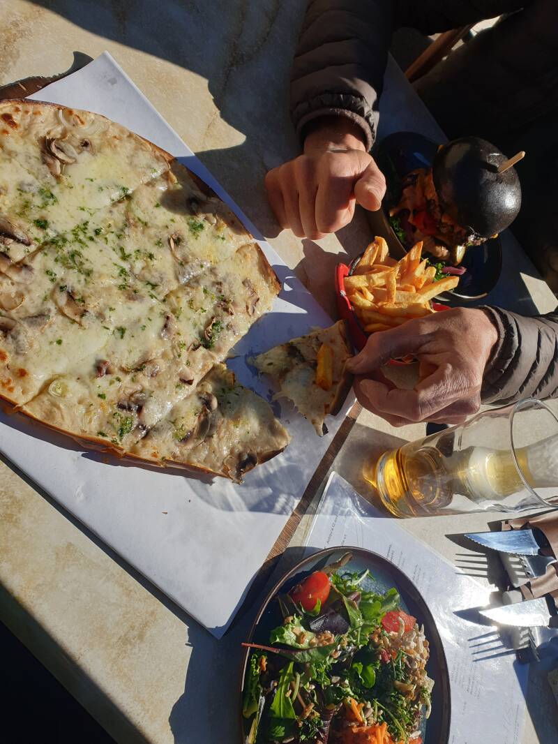 Von Sonnenstrahlen gekitzelt und den Aufbruch doch verschoben, marschieren wir dann ein letztes Mal zu zwein los.
