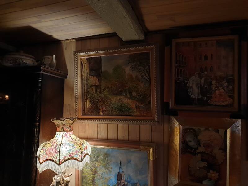 Jetzt ist Licht an und ich sehe: an den Wänden, auf den Tischen und angelehnt, ihre Malereien. La peinture, das hat sie gelernt.