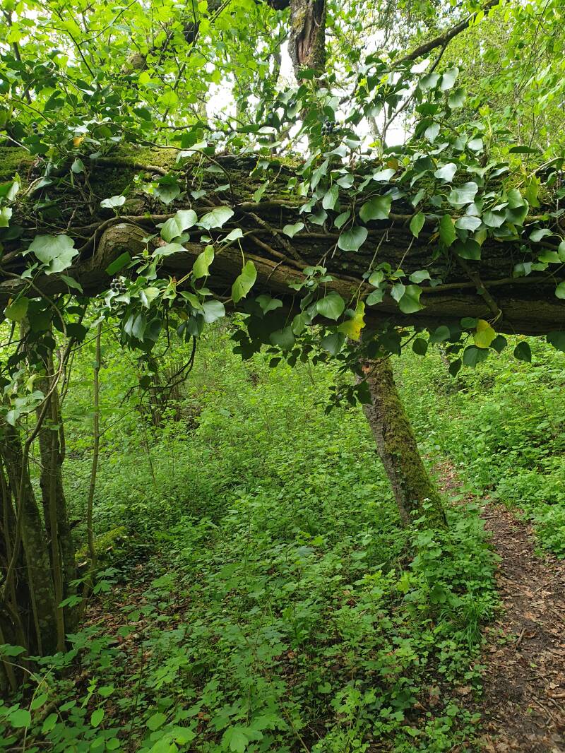 Erst wollte ich auf dem Bolzplatz schlafen etwas unterhalb - da Omas Stöcke aber nicht im Boden hielten, bin ich noch diesem kleinen Weg gefolgt, der mich zu einem Platz im absoluten Nichts führte. Es sieht nach Hobbitbergen aus und es gibt einen kleinen See.