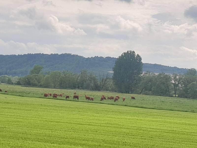Viele Kühe sehe ich und das Wetter ist ein bisschen rau, aber das tut gut; vor allem in meinem Schritt für Schritt Takt. Da sind eine Reihe von gepflegten Schrebergärten und in einem hing sogar eine Hängematte. Da war ich ehrlich kurz versucht. :p