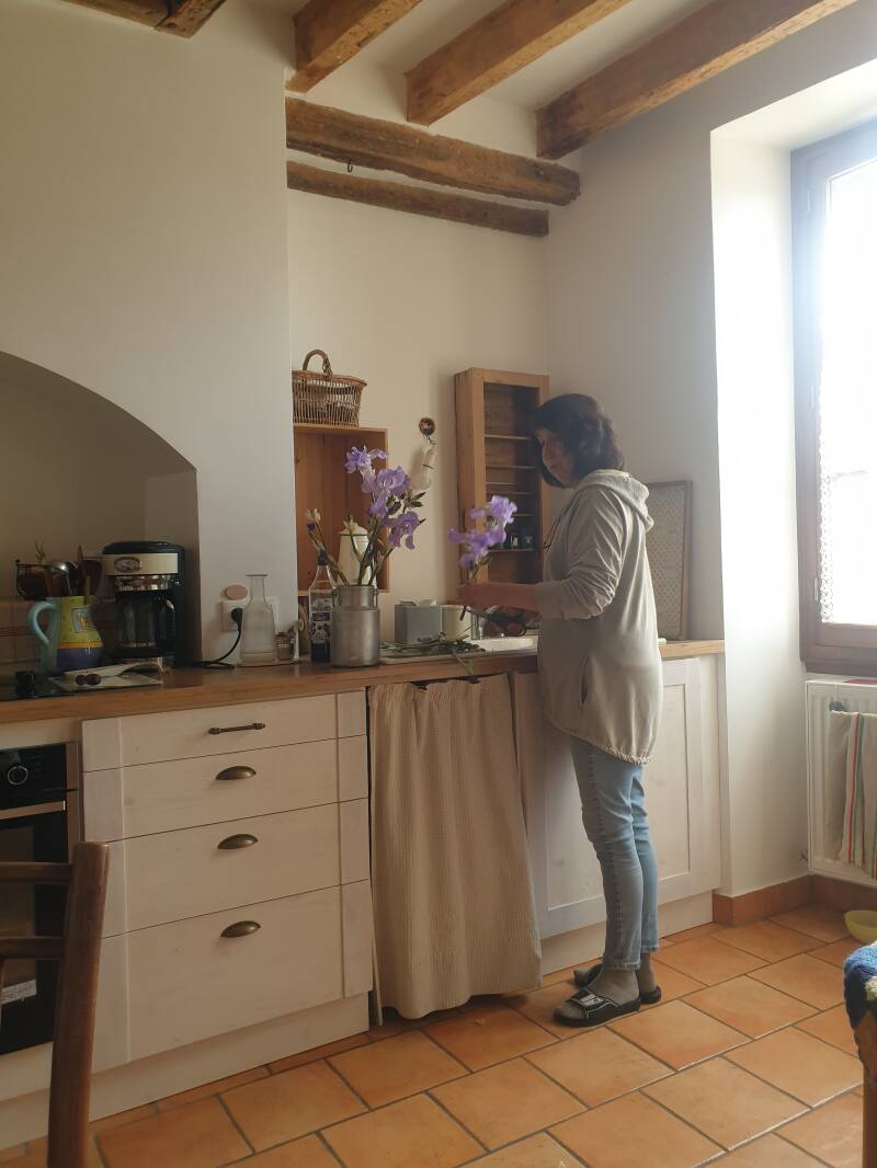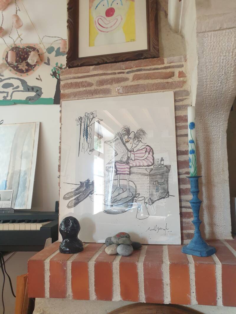 Sie hat im École maternelle gearbeitet, bevor sie in den Ruhestand ging. Bei uns entspräche das etwa den letzten beiden Jahren im Kindergarten, glaube ich. Überall im Haus hängen viele Karten und Bilder ihrer Kinder - den eigenen wie den auf Zeit.