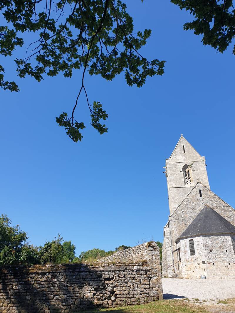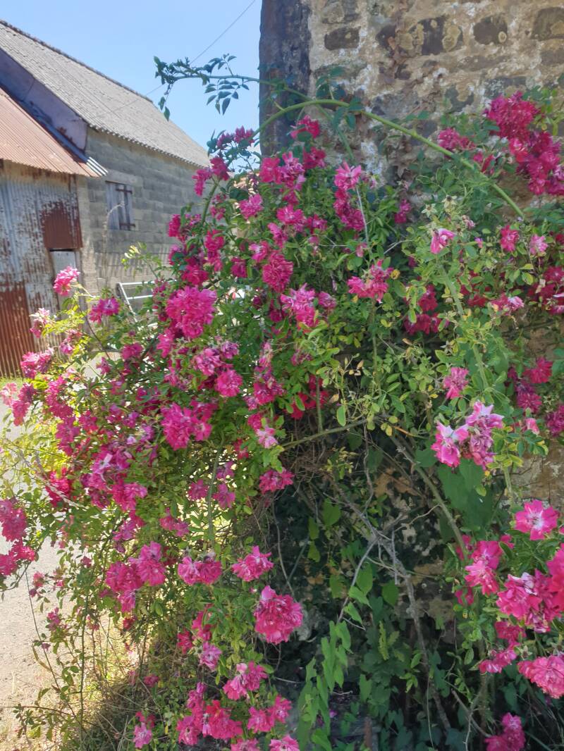 Da ist ein Hof, groß sieht er aus und im Garten lässt sich sicherlich ein Zelt aufschlagen. Aber außer drei Hunden sehe ich niemanden; also gehe ich weiter. Tant mieux! - Wie gut!