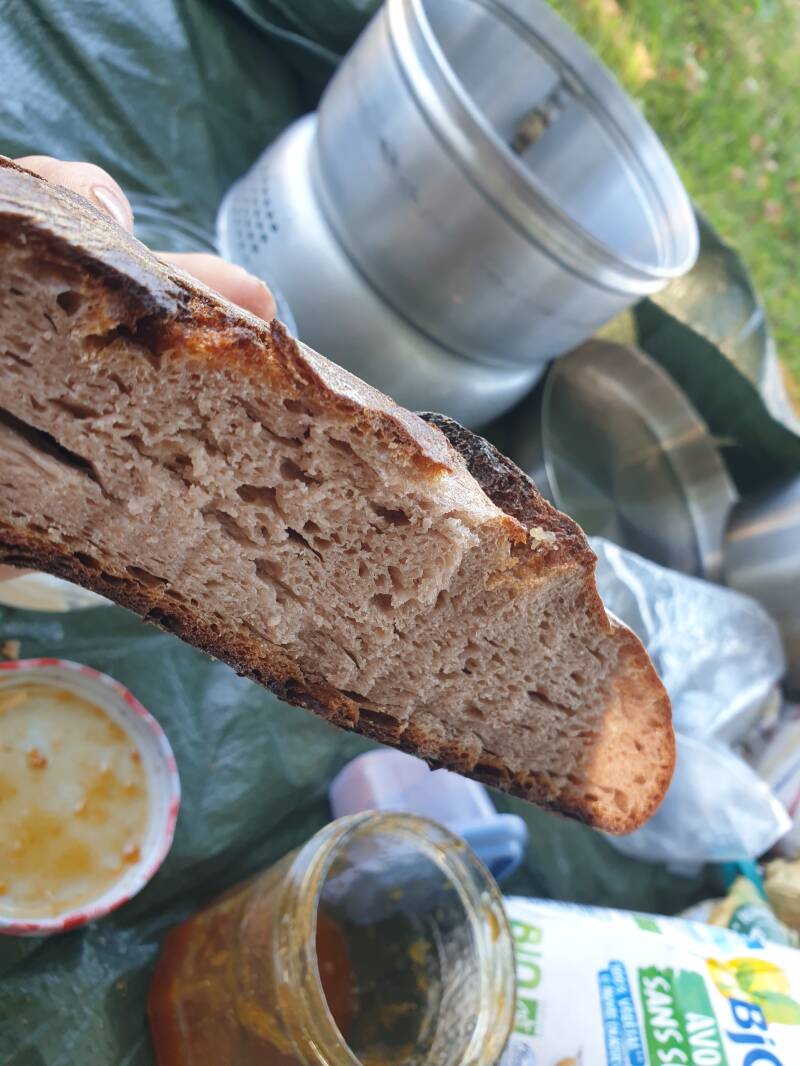 Es ist Jean, der in seiner Küche sitzt. Karines Vater. Oh, sie wirst du noch schnell genug kennenlernen. Keine Sorge. :)) Ihn frage ich - durchs Küchenfenster hindurch - ob er vielleicht einen Platz hätte, wo ich mein Zelt aufschlagen könnte für die Nacht. Und er sagt Ja. Und nein zugleich. Denn er bittet mich, im Zimmer seiner anderen Tochter zu schlafen, die gerade in der Welt unterwegs ist.