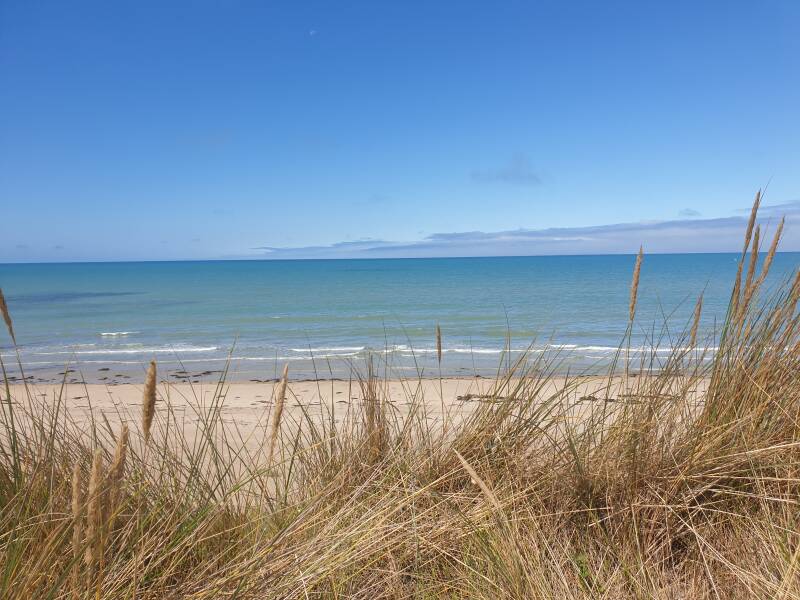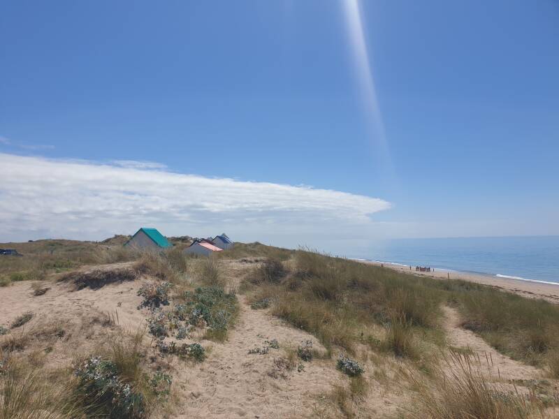 Hinter den Dünen von Pirou taucht das Meer wieder auf und es fühlt sich so viel leichter an, zu wissen, dass ich für heute einen Backup habe. Es ist Freitag und Didier und ich treffen uns heute bei Vero und Gilles. Die in Lingreville wohnen. Bis dort ist noch ein ganz schönes Stück - ein Hafen liegt hinter dieser Dünenstrecke, und nicht jeder Tag ist zum Fliegen da. Didier fährt nachmittags los - aus Bretteville - und gabelt mich dann auf dem Weg auf. Mit diesem Wissen laufe ich so viel leichter. Es ist wichtig, sich helfen zu lassen. Wenn Menschen da sind, die dich gern haben. Und die sind da, das kann ich dir sagen.
