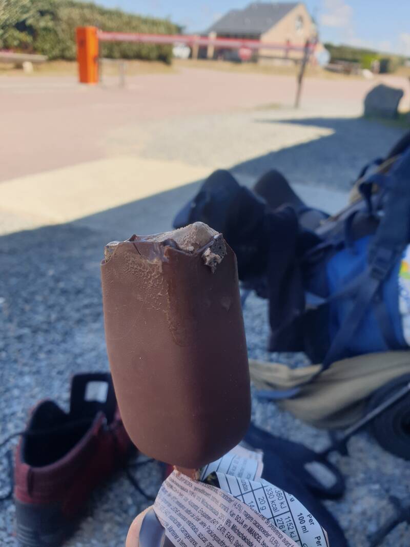 Bei einem Campingplatz, der perfekt auf meinem Weg lag, hab ich mir ein Eis gegönnt & dabei mit Tony von der Rezeption mich unterhalten. Der enthusiastisch Deutsch lernt und wir haben bestimmt viermal 'Auf Wiedersehen' gesagt.