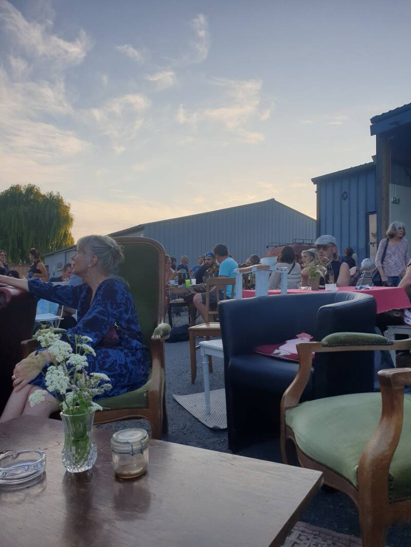 Didier nimmt uns mit auf ein Konzert - stellt mich seiner Lieblingsband vor. Das ganze findet auf der Location eines Flohmarktes statt - einer Brocante. Es stehen Tische, Sofas, Sessel, Stühle und Bänke herum, Menschen sind beisammen und auf dem Boden liegen Teppiche. Es ist wie ein Wohnzimmer unterm freien Himmel und ich bin mittendrin; mitten dabei. Miteinander da.